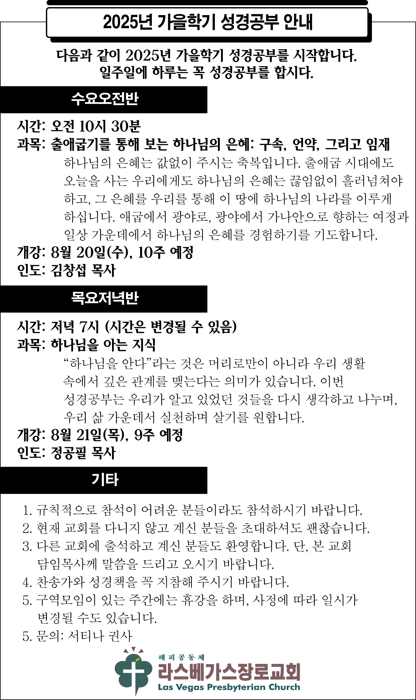 2025년 가을학기 성경공부 안내
