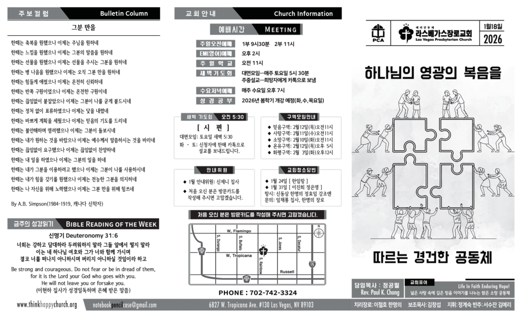 ▣ 일시: 1월 25일(주일) 오전 2부 예배 직후